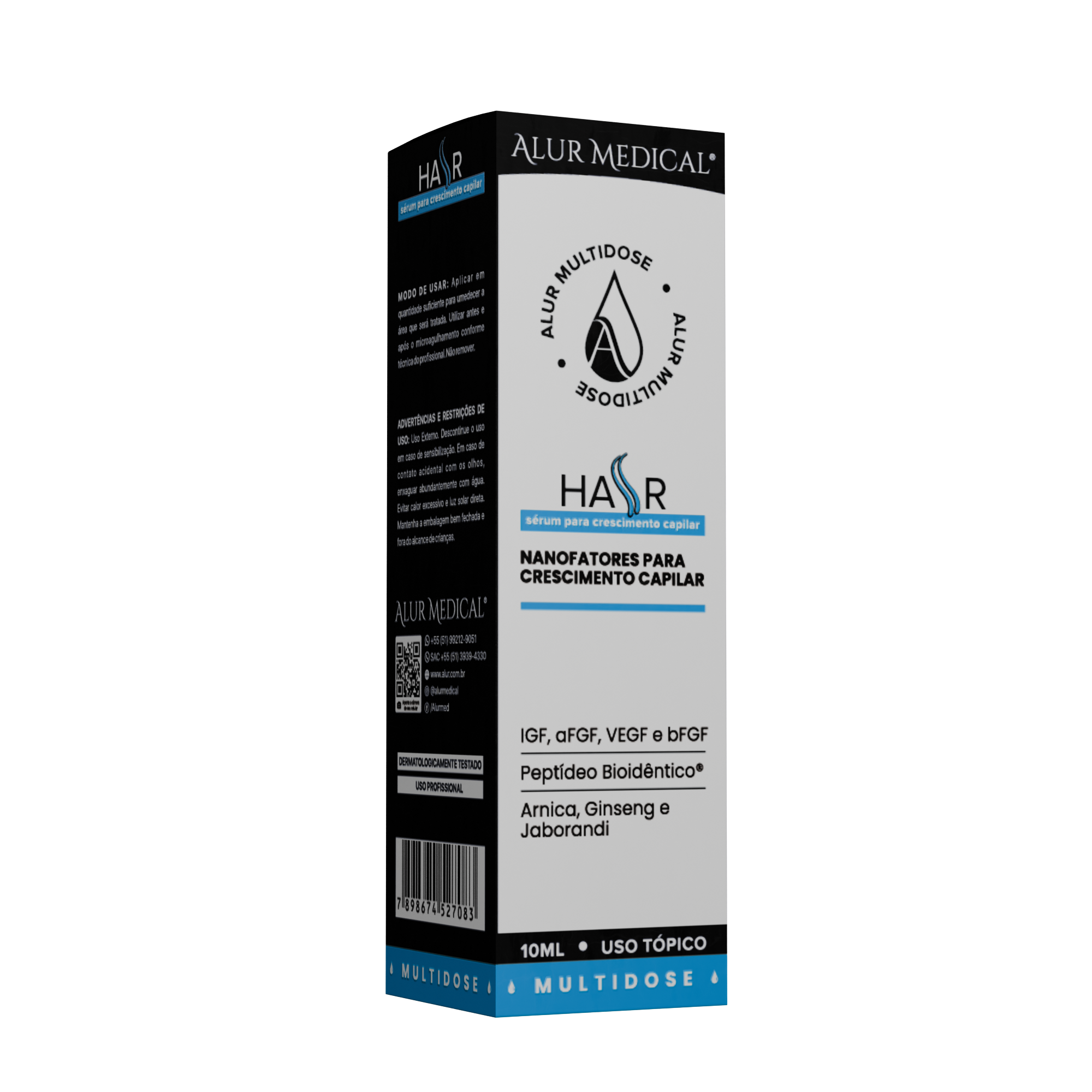 A Multidose Hair foi especialmente formulada com nanofatores para estimular o crescimento e fortalecimento capilar. Sua composição inclui ativos como