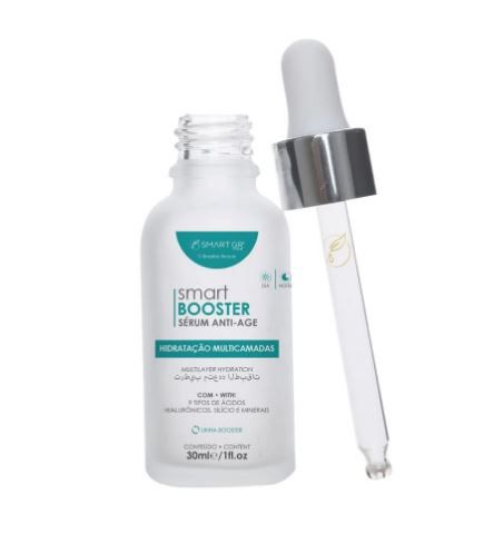 O Smart Booster Sérum é um sérum de alta tecnologia, que foi desenvolvido com 9 tipos diferentes de ácido hialurônico, a combinação perfeita para garantir a hidratação em todas as camadas da pele. O poder do ácido hialurônico combinado com silício orgânico garante a hidratação e regeneração profunda da pele.